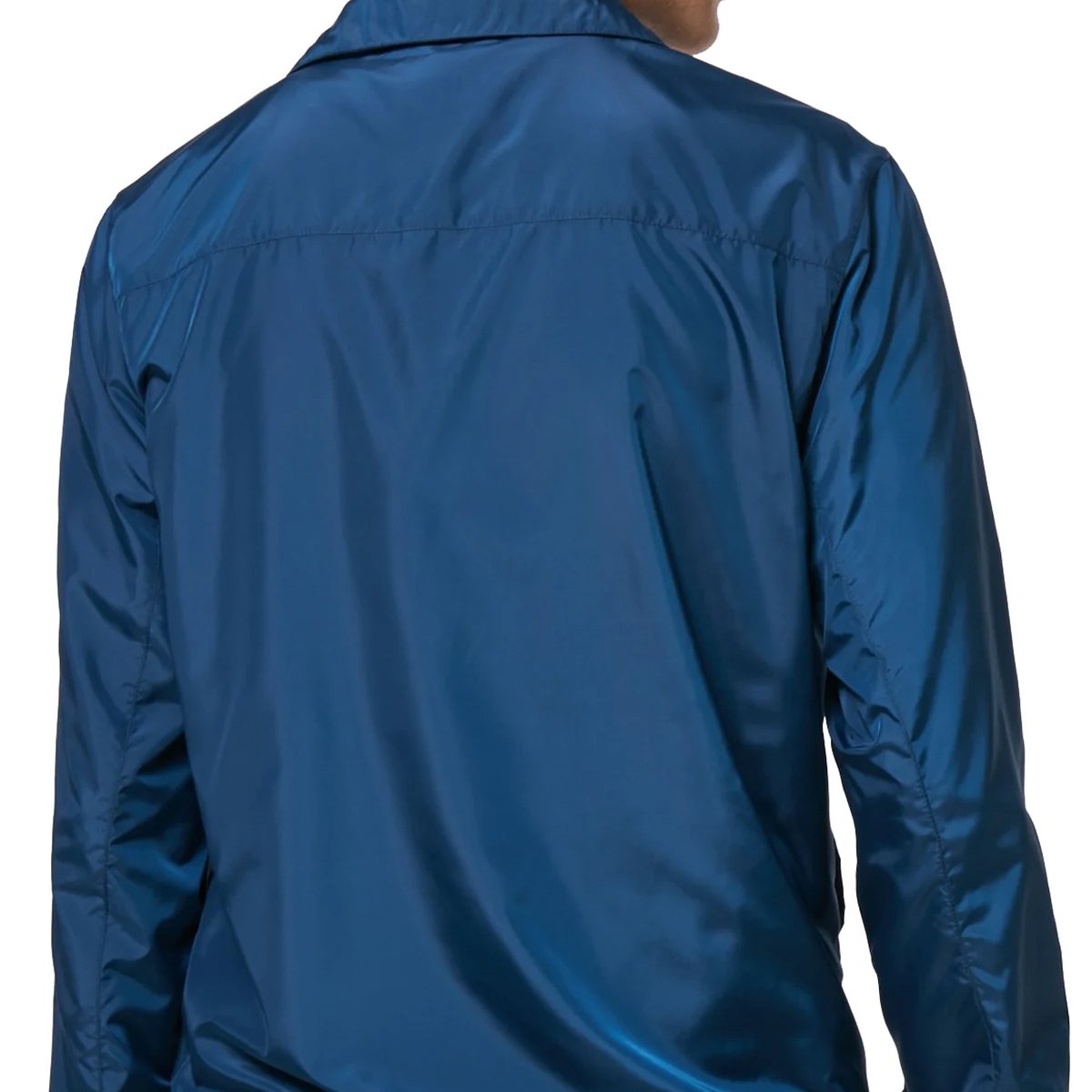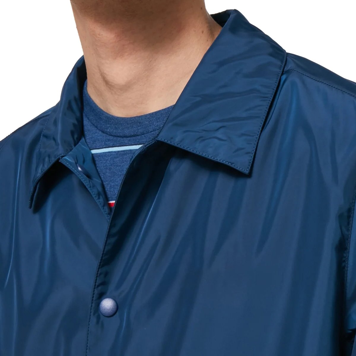 This premium coach jacket features a spread collar, long sleeves, banded cuffs, two front slit pockets and a front button fastening with adjustable tabs at the waist.